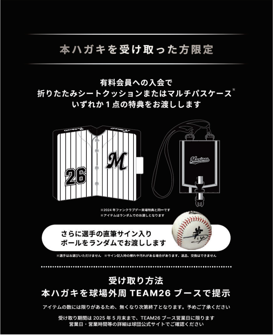 ♦問題となったのは、同社が運営する有料会員制ファンクラブ「千葉ロッテマリーンズ公式ファンクラブ TEAM26」の令和7年度会員向けサービスに関し、一般消費者に郵送したダイレクトメール。