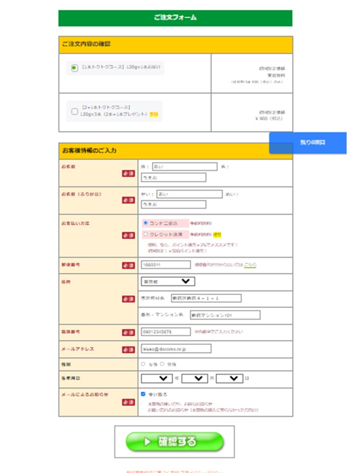 フォーム一体型LPでの定期コース記載 ~2662~(2022/04/21)