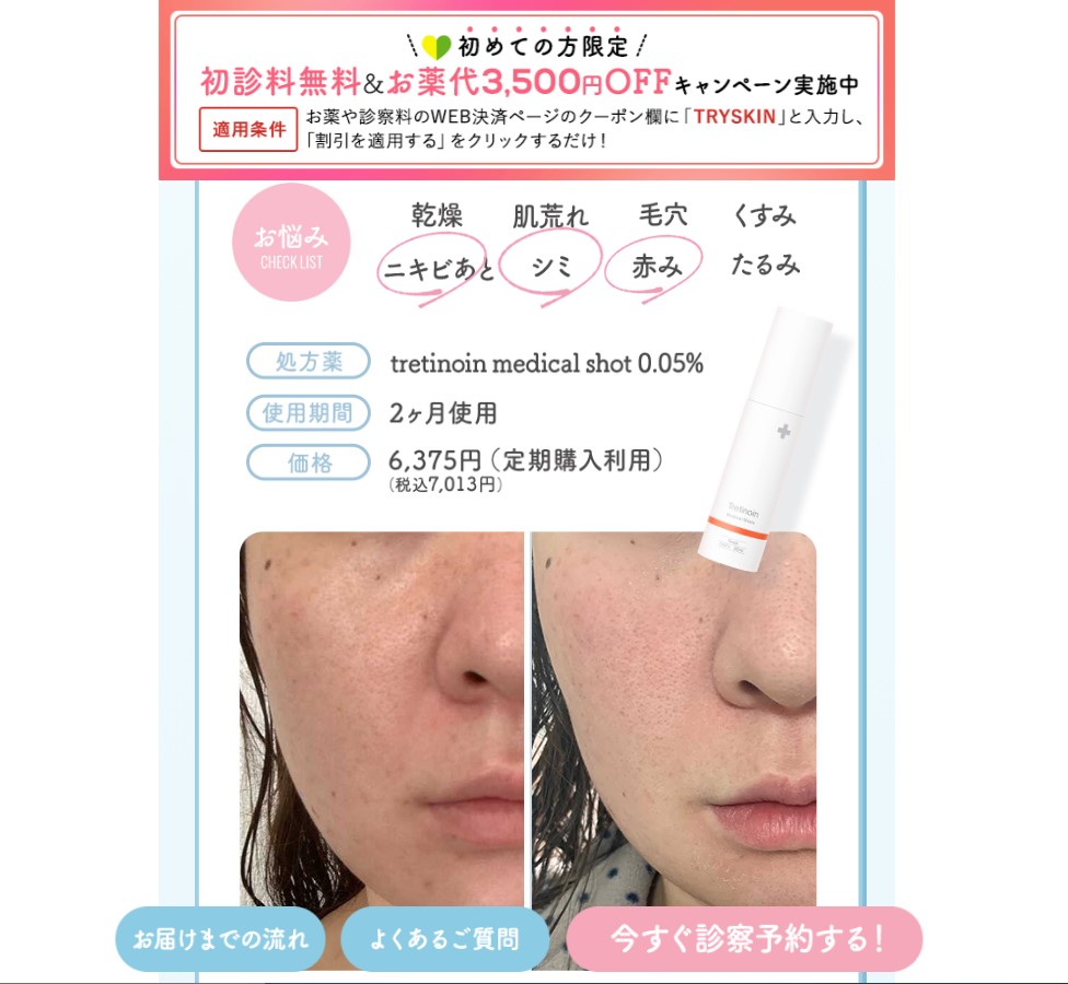 状態を医師がオンライン診察。肌悩みやなり