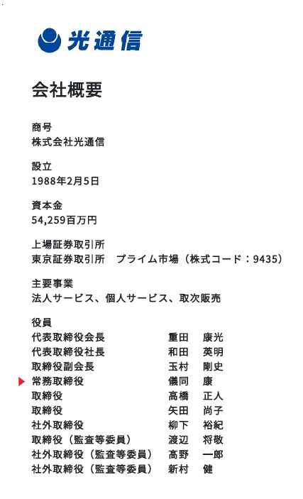 対し、代表理事の「儀同 康」氏は(株)光通信